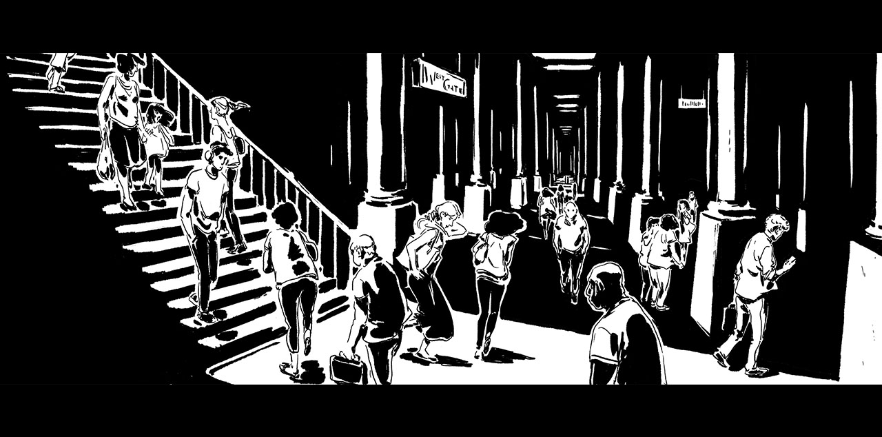 en déambulant